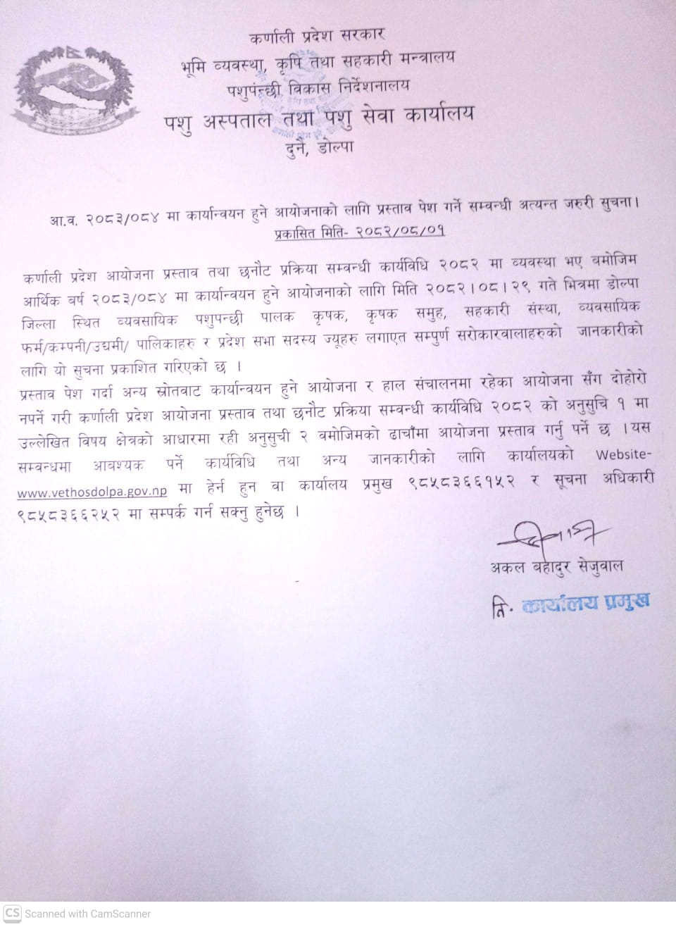 यस पशु सेवा कार्यालय बि.स. २०३८ शालमा भेटेरिनरी डिस्पेन्सरीको रुपमा स्थापना भई २०३९/०४/ ०१ गते देखि पशु चिकित्शालय शाखा मा रुपान्तरण भई अनवरत रुपमा पशु विकास सम्बन्धि विभिन्न कार्यक्रम तथा गतिविधिहरु संचालन गर्दै आईरहेको छ।स्थापनाकाल देखिनै राज्यको संरचनात्मक सुधार एवं परिवर्तन सङ्गै बिभिन्न नामले यस कार्यालयले सेवा दिन शुरु गरेको थियो। यस कार्यलयको स्थापना पश्चातको विवरण निम्नअनुसारको छ । १. तत्कालिन पन्चायतकालिन राज्य व्यवस्थामा चिकित्सा ईकाइ, पशु विकास तथा पशु स्वास्थ्य हुंदे बि. स. २०४५ शाल सम्म आइपुग्दा जिल्ला पशु सेवा शाखामा रुपान्तरण भएको थियो। २. मिति २०५२/०३/०५ को कृषि मन्त्रालयको संगठनात्मक सुधार अनुसार मिति २०५२/४/१ देखि लागु हुने गरी पशु सेवा विभाग अन्तरर्गत जिल्ला पशु सेवा कार्यालयको रुपमा स्थापना भएको । ३. नेपाल सरकारको मिति २०७२ पौष ९ गतेको निर्णयद्धारा पशुपन्छी बिकास मन्त्रालयको संगठनात्मक सुधार अनुसार मिति २०७२/०८/१३ देखि लागु हुने गरी पशु सेवा विभाग अन्तरर्गत जिल्ला पशु सेवा कार्यालयको रुपमा स्थापना भएको । ४. नेपाल संघियतामा गए सँगै कर्णाली प्रदेश सरकारले निर्णय अनुसार मिति २०७५/६/२४ को निर्णयवाट भेटेरिनरी अस्ताल तथा पशु सेवा बिज्ञ केन्द्र को रुपमा नामाकरण भई जिल्ला को ८ वटै स्थानिय तह संग समन्वय गरि सेवा दिन शुरु। ५. पुन: २०७६/०५/१५ गते भूमि व्यबस्था कृषि तथा सहकारी मत्रि मा. बिमला के सी ज्यू बाट साबिकको भेटेरीनरी अस्पताल तथा पशु सेवा बिज्ञ केन्द्र बाट पशु अस्पताल तथा पशुसेवा कार्यालय को रुपमा उद्याटन भई सेवा दिन शुरु।